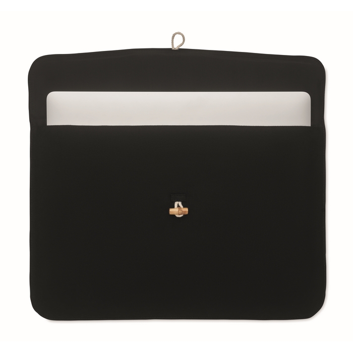 Laptophülle aus Baumwolle mit Bambusverschluss, 15", 120 g/m2
