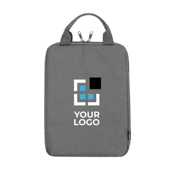 Praktische und gepolsterte Hülle für Tablet aus RPET. Obere Öffnung mit Reißverschluss, Metallzipper und Tragegriff. Für Tablets bis zu 10 Zoll. Außenetikett mit RPET-Logo. RPET-Material besteht aus recyceltem Kunststoff, fördert somit die Wiederverwendung von Plastikabfällen und trägt zur Nachhaltigkeit des Planeten bei.