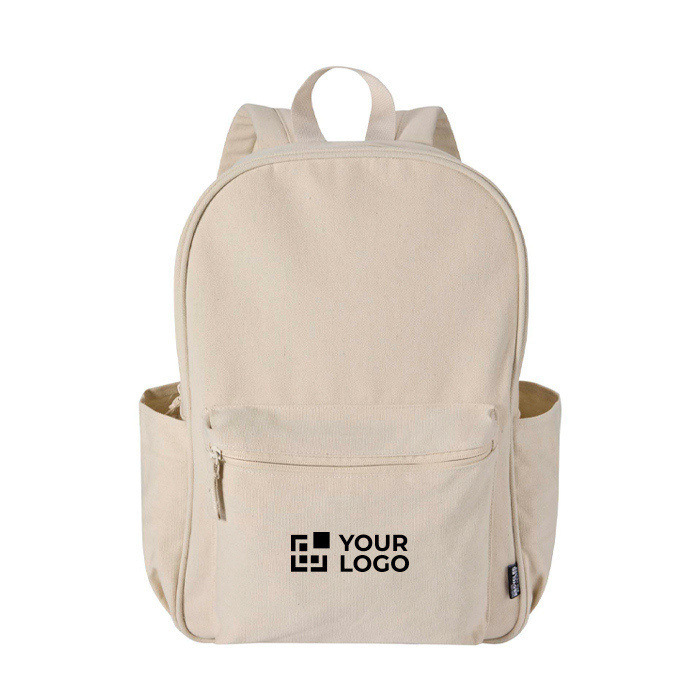 Wasserabweisender Urban-Rucksack aus recyceltem Canvas mit GRS-Zertifikat (Global Recycled Standard) und passendem Innenfutter aus recyceltem Kunststoff. Er verfügt über ein gepolstertes Fach für einen Laptop bis 15,6 Zoll sowie über eine zusätzliche gepolsterte Tasche zum Schutz des Equipments auf täglichen Wegen. Hinzu kommen eine Fronttasche mit Reißverschluss und zwei Seitentaschen zur Organisation von Zubehör sowie ein Rücken aus atmungsaktivem Mesh und verstellbare Schultergurte für angenehmen Tragekomfort. Mit 16 Litern Fassungsvermögen eignet er sich für HR-Maßnahmen, Veranstaltungen und als Firmengeschenk mit Logo.