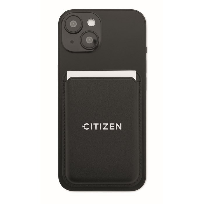 Magnetischer Kartenhalter aus Kunstleder, um bis zu 3 Kreditkarten kompakt mitzunehmen. Er wird über seine magnetische Basis am Telefon befestigt und hilft, die Karten griffbereit zu halten, ohne zusätzliches Volumen in der Tasche zu verursachen. Integrierte Standfunktion, um das Smartphone bei Videoanrufen oder beim Ansehen von Inhalten im Hoch- oder Querformat zu positionieren. Enthält zusätzlich einen Metallring für besseren Halt oder eine einfachere tägliche Handhabung. Empfohlen für Corporate-Aktionen, Messen oder Willkommenspakete.