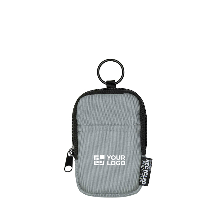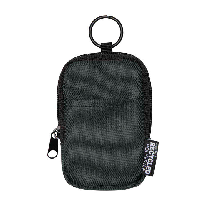Münzportemonnaie aus recyceltem Polyester mit GRS-Zertifizierung (Global Recycled Standard), entwickelt, um kleine Gegenstände unterwegs und auf Reisen zu ordnen. Es verfügt über ein Hauptfach mit Reissverschluss sowie ein Innenfach für Münzen, Schlüssel, Kopfhörer, Karten, Geld oder Ladekabel. Die vordere Aussentasche ermöglicht schnellen Zugriff auf das, was am häufigsten genutzt wird. Dank des integrierten Karabiners lässt es sich sicher an Rucksäcken, Gürteln, Sporttaschen oder Gepäck befestigen. Es eignet sich hervorragend als Firmenpräsent auf Messen, für HR-Massnahmen oder Markenveranstaltungen.