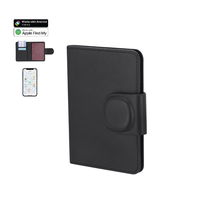 Passhülle aus Kunstleder mit integriertem intelligentem Ortungsgerät, ausgelegt für Unternehmensreisen und häufige Dienstwege. Sie bietet eine Dual-Verbindung, kompatibel mit Apple Find My und Android Find Hub, um den Standort in Echtzeit schnell und präzise zu verfolgen. Der Magnetverschluss hilft, die Dokumente während der Reise geschützt zu halten. Inklusive Knopfzelle, sofort ab dem ersten Tag einsatzbereit. Eine praktische Option für Markenmaßnahmen auf Messen, Verkaufsanreize oder zur Begrüssung neuer Mitarbeiter.
