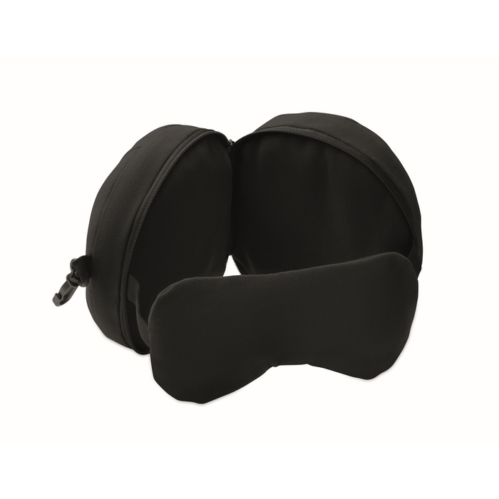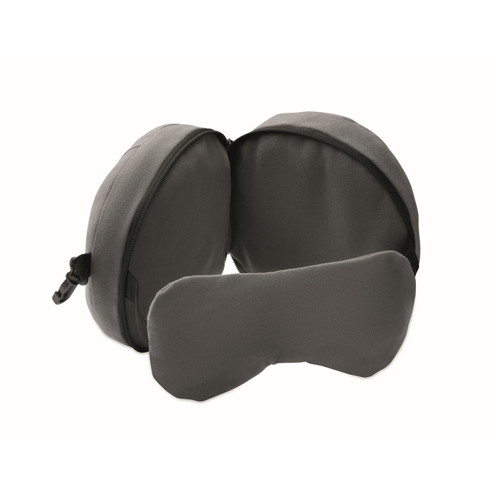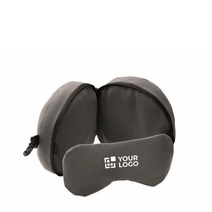 2 in 1 Reisekissen mit integrierter Schlafmaske, entwickelt, um das Ausruhen während der Fahrt zu erleichtern. Das Design kombiniert Nackenstütze und eine Maske zum Abdecken der Augen – nützlich in Flugzeugen, Zügen oder Wartebereichen mit Umgebungslicht. Es benötigt wenig Platz und ist einfach zu handhaben, wodurch es gut in Corporate-Reisesets passt. Praktische Option für interne Aktionen, Willkommenspakete oder Geschenke für Veranstaltungen und Geschäftstermine.