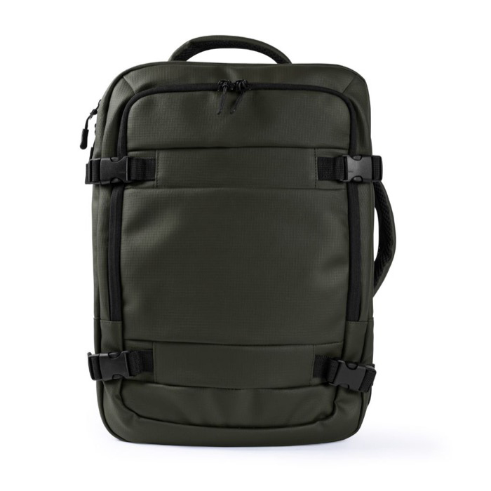 Vielseitiger 20-Liter-Rucksack, wasserabweisend, mit Kofferöffnung und Trolleygriff. Verleiht Geschäftsreisen Ihres Teams eine klare Corporate-Note.