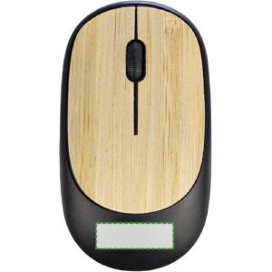 Schwarze kabellose Maus mit Bambusdetails bedrucken