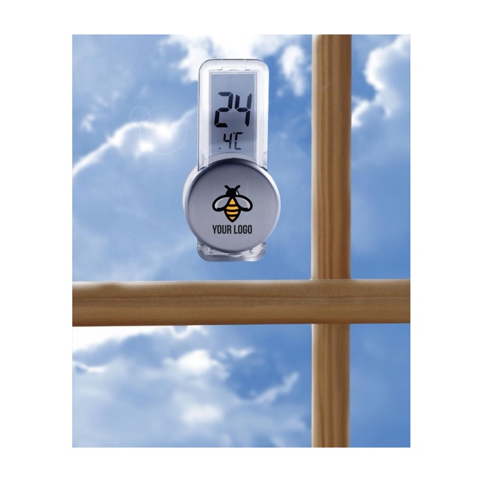 Digitale Innen-Wetterstation mit Saugnapf, inklusive Batterie. Eine originelle Möglichkeit, Markenpräsenz auf besondere Weise zu verstärken.