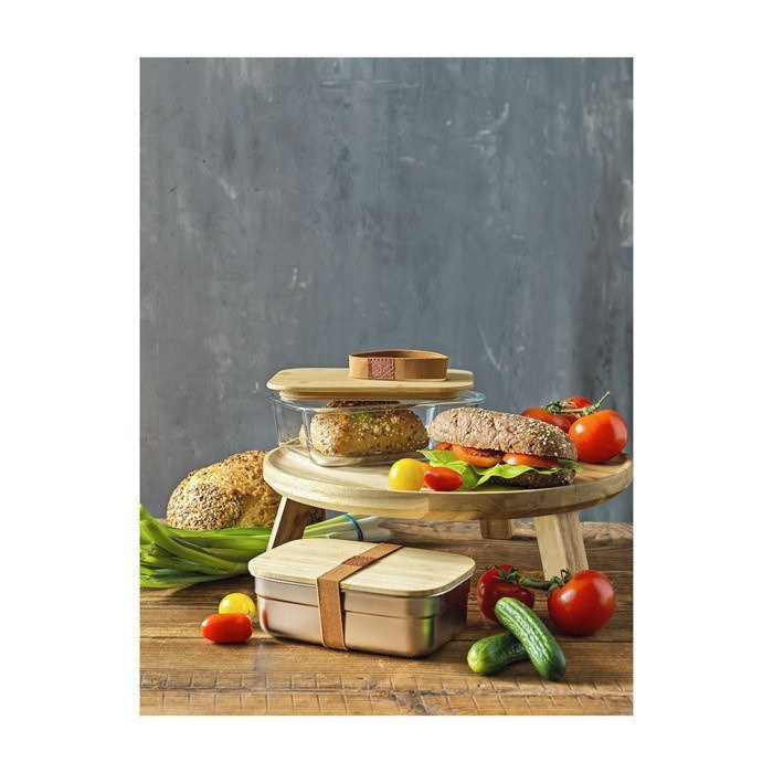 Bedruckbare Brotdose mit Bambusdeckel im natürlichen Look, 1 L
