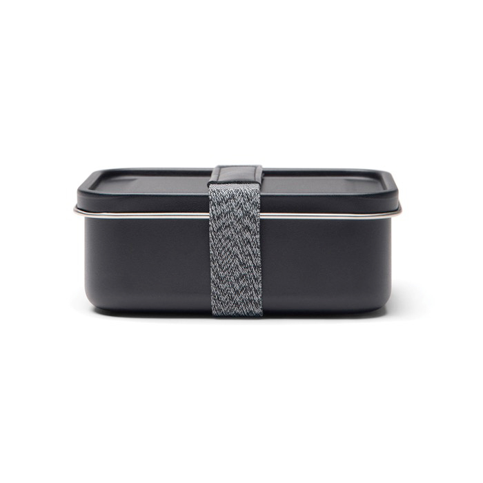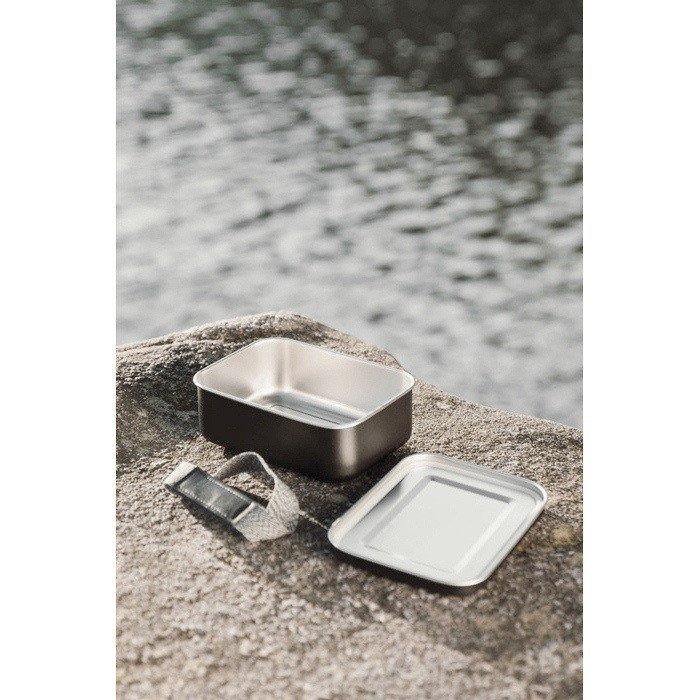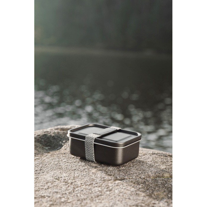 Edelstahlbehälter für den Alltag außer Haus, mit einem Elastikband, das den Deckel beim Transport an seinem Platz hält. Praktisch für kalte oder lauwarme Speisen und leicht von Hand zu reinigen. Nicht für Mikrowelle oder Geschirrspüler geeignet. Da er nicht dicht ist, ist er nicht für Flüssigkeiten vorgesehen. Mit RCS-Zertifizierung (Recycled Claim Standard), die die Rückverfolgbarkeit recycelter Materialien in der Lieferkette bestätigt. Nützlich für die Bürokantine, interne Veranstaltungen oder Werbeartikel mit Logo.