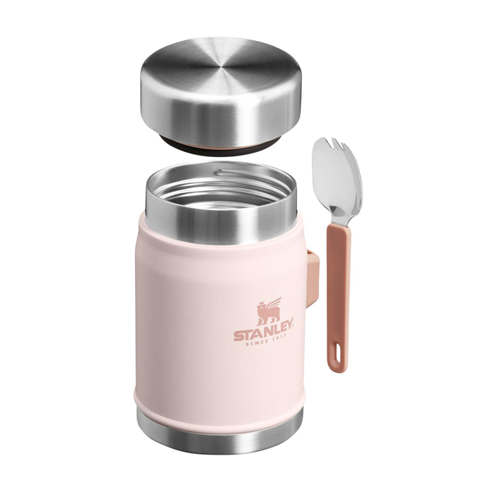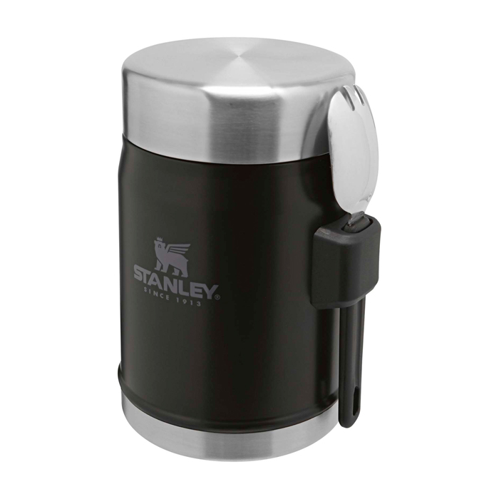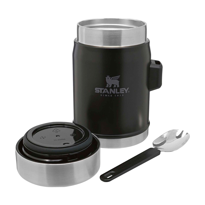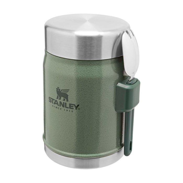 Stanley Legendary Food Jar mit Spork (Löffel/Gabel-Kombination) – perfekt zum Mitnehmen heißer oder kalter Mahlzeiten auf Reisen oder beim Camping. Der isolierte Deckel mit Druckablassventil erleichtert das Öffnen, während die weite Öffnung das Befüllen, Servieren und Reinigen besonders einfach macht. Hergestellt aus robustem Edelstahl und spülmaschinengeeignet, inklusive Edelstahl-Spork, der seitlich in der Halterung befestigt wird – ideal, um Ihre Mahlzeit überall und jederzeit zu genießen.