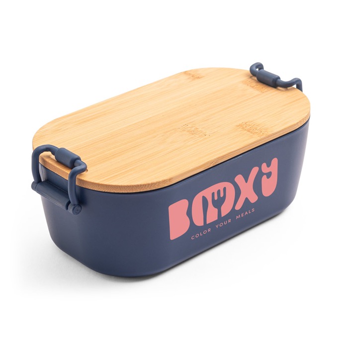 Hermetischer Kunststoffbehälter mit Bambusdeckel und seitlichen Sicherheitsschnallen für einen festen Verschluss. Spülmaschinengeeignet, um die tägliche Reinigung zu erleichtern, und in der Mikrowelle verwendbar, wenn der Deckel abgenommen wird. Das Fassungsvermögen von 1 L ist praktisch für vorbereitete Mahlzeiten, Snacks oder die Aufbewahrung im Büro. Durch den Einsatz natürlicher Materialien können der Farbton des Deckels und das Ergebnis der Kennzeichnung von Stück zu Stück variieren. Eine nützliche Option für Willkommensaktionen, Mitarbeiter-Kits oder Kampagnen rund um Ernährung.