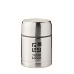 Für die Aufbewahrung oder den Transport von Lebensmitteln unterwegs präsentieren wir Ihnen diesen praktischen, bedruckbaren, doppelwandigen Behälter aus Stahl mit Schraubdeckel.