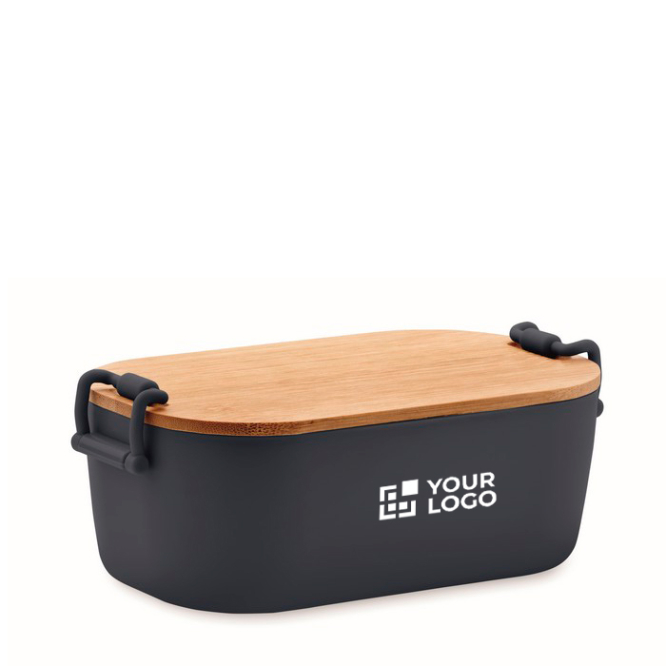 Transportieren Sie Ihr Essen mit dieser personalisierten 700-ml-Lunchbox. Strapazierfähiges PP, Deckel aus Bambus und zwei Seitenlaschen für sicheren Transport.
