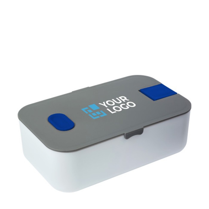 Praktische Lunchbox mit großem Fassungsvermögen und einem Organizer innen. Außerdem dient der Deckelverschluss als Handyhalterung.