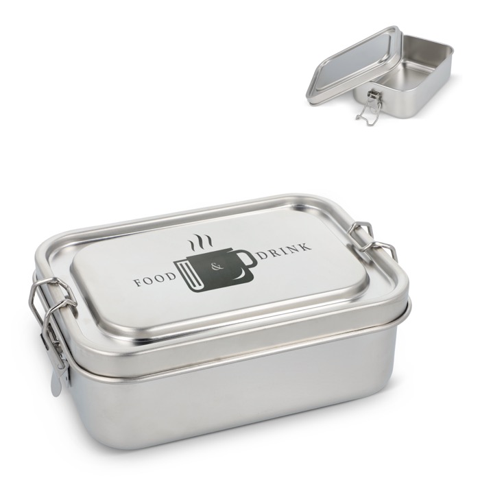 Lunchbox aus Edelstahl mit sicher schließendem Deckel, geeignet für den täglichen Einsatz im Büro oder unterwegs. Das auslaufsichere System hilft, Verschütten in Rucksäcken und Aktentaschen zu vermeiden und den Inhalt zuverlässig zu schützen. Die robuste Konstruktion sorgt für eine lange Nutzungsdauer und eine einfache Reinigung. Wird in einer Geschenkbox geliefert und ist somit direkt für Unternehmensaktionen einsatzbereit. Eine praktische Option für Betriebskantinen, Gesundheitskampagnen und Markenartikel bei internen Veranstaltungen.
