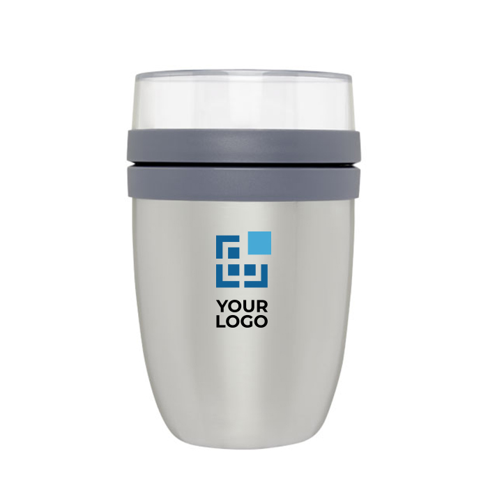 Isolierter Essensbehälter mit zwei verschiedenen Fächern, um die verschiedenen Zutaten getrennt zu halten. Beide Fächer haben einen separaten Deckel, damit sich die Zutaten nicht vermischen. Hält Speisen 10 Stunden warm oder 16 Stunden kalt. Damit die Speisen möglichst lange heiß oder kalt bleiben, empfiehlt es sich, den Essensbehälter vor dem Befüllen mit heißem oder eiskaltem Wasser auszuspülen. Das Fassungsvermögen des oberen transparenten Behälters beträgt 200 ml, was bedeutet, dass er ungefähr 75 Gramm feste Nahrung aufnehmen kann. Das Fassungsvermögen des unteren Behälters beträgt 500 ml. Aus strapazierfähigem Material. Die Außenseite des Behälters bleibt kühl und trocken. Handwäsche wird empfohlen. Die Kunststoffteile des Deckels können in die Spülmaschine gegeben werden. Auslaufsicher. BPA frei. 2 Jahre Mepal Garantie.