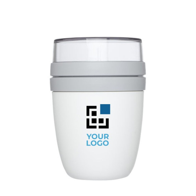 Lunchpot mit zwei verschiedenen Fächern, um die verschiedenen Zutaten getrennt zu halten. Beide Behälter haben einen separaten Deckel und bleiben daher sauber. Das Fassungsvermögen des oberen transparenten Behälters beträgt 200 ml, was bedeutet, dass er ungefähr 75 Gramm feste Nahrung aufbewahren kann. Das Fassungsvermögen des unteren Behälters beträgt 500 ml. Hergestellt aus strapazierfähigem Material und kann im Gefrierschrank, in der Mikrowelle (Deckel abnehmen) und in der Spülmaschine verwendet werden. Der obere transparente Behälter ist nicht für die Mikrowelle geeignet. Auslaufsicher. BPA-frei. 2 Jahre Mepal Garantie.