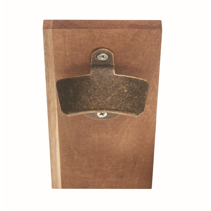 Flaschenöffner für Wand aus Akazienholz und Eisen mit starkem Magnet. Einzigartiges Accessoire für Bars und Pausenräume im Büro.