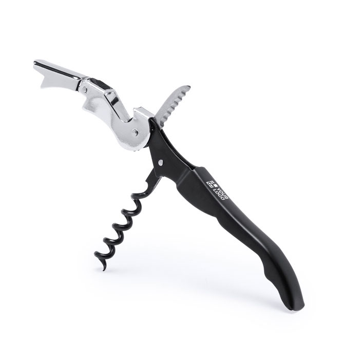 Zweistufiger Flaschenöffner mit Korkenzieher, hergestellt aus rostfreiem Stahl. Wenn Ihr Geschäft auf Gastronomie ausgerichtet ist oder damit in Verbindung steht, sollten Sie nicht die Gelegenheit verpassen, diesen beliebten Artikel zu verschenken. Er ist praktisch, kostengünstig und langlebig. Außerdem können Sie ihn farbig oder mit Lasergravur personalisieren. Dieser Artikel gehört zu den beliebtesten Werbeartikeln in unserem Katalog.
