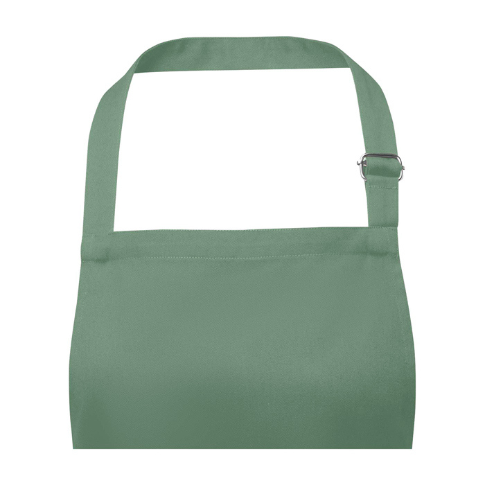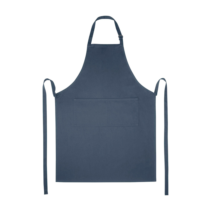 Schürze aus strapazierfähigem Twill-Stoff (65 % Polyester, 35 % Baumwolle), zwei Taschen, verstellbar mit Schnalle im Nacken und Knotenverschluss.