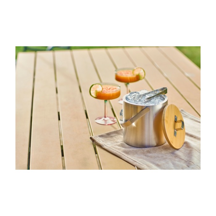 Edelstahleiskübel mit doppelwandiger Isolierung und Bambusdeckel