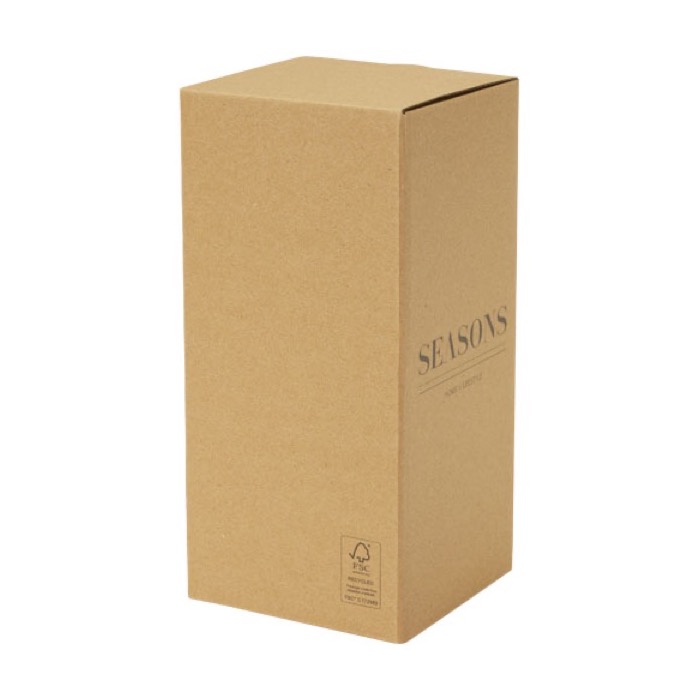 Robuster Lebensmittelbehälter aus Glas mit Bambusdeckel, mikrowellen- und spülmaschinenfest (ohne Deckel). In recycelter Kraftpapierbox. Fassungsvermögen: 940 ml.