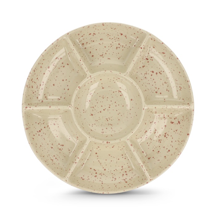 Handgefertigter Keramikteller mit gesprenkelter Oberfläche und natürlichen Beigetönen, geeignet zum Servieren von Tapas, Tacos und Fingerfood bei Meetings oder Veranstaltungen. Jedes Stück ist ein Unikat mit leichten Abweichungen, die für eine besondere Optik sorgen. Das moderne Design passt sowohl in gastronomische Umgebungen als auch in Büros mit Catering. Spülmaschinengeeignet für eine einfache Reinigung und langfristige Nutzung. Eine praktische Option für gastronomisches Merchandising und Markenaktionen.