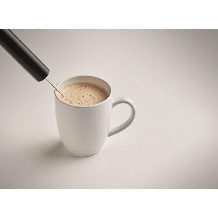 Batteriebetriebener Milchaufschäumer mit Betrieb über 2 AA-Batterien (nicht enthalten). Kompaktes, leicht zu handhabendes Design, um in wenigen Sekunden Schaum zuzubereiten – ganz ohne Steckdose oder zusätzliches Zubehör. Praktisch für Büroküchen, Pausenräume oder Hospitality-Bereiche bei Veranstaltungen und lässt sich platzsparend verstauen. Einfache Lösung für den täglichen Genuss zu Kaffee und Heißgetränken. Kann als Corporate-Giveaway in Willkommenspaketen oder für interne Aktionen verwendet werden.