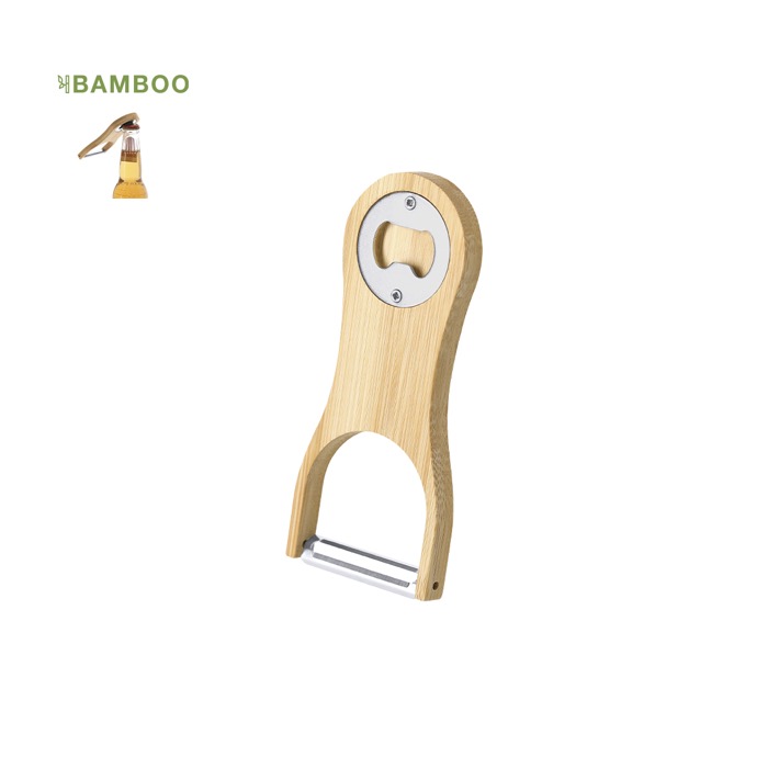 2 in 1 Schäler und Flaschenöffner aus Bambus und Edelstahl