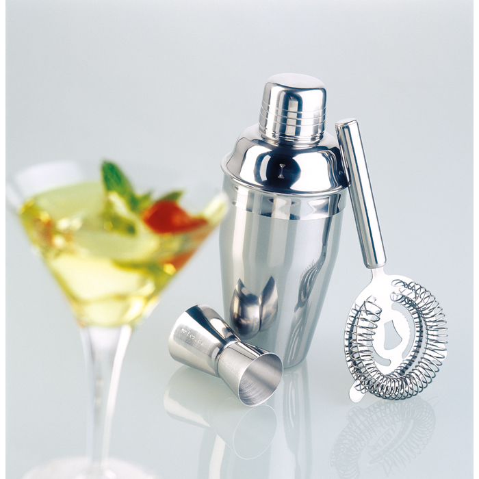 Cocktail-Set mit Shaker, Messbecher und Barsieb aus Edelstahl, 500 ml