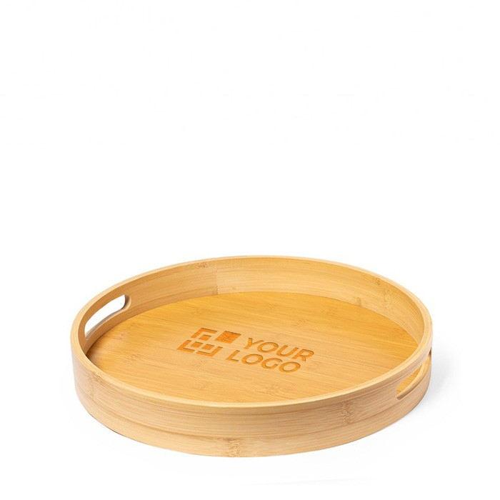 Rundes Serviertablett mit Doppelgriff aus natürlichem Bambus