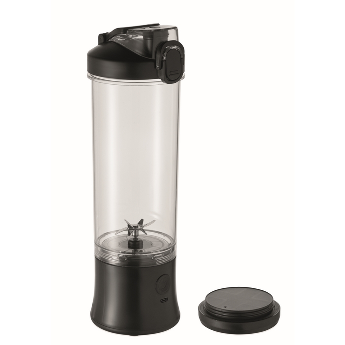 Tragbarer Mixer aus PCTG mit PP-Deckel, zusätzlichem Trinkdeckel und Trageschlaufe für bequemes Mitnehmen. Integriert einen 18.000 U/min Motor zur Zubereitung von Smoothies und schnellen Mischungen im Alltag. Betrieb mit 2 wiederaufladbaren Akkus und inklusive USB‑Typ‑C‑Ladekabel. Fassungsvermögen 600 ml, geeignet für den individuellen Gebrauch im Büro oder unterwegs. Praktische Option für interne Aktionen, Willkommenspakete oder Corporate Merchandising.