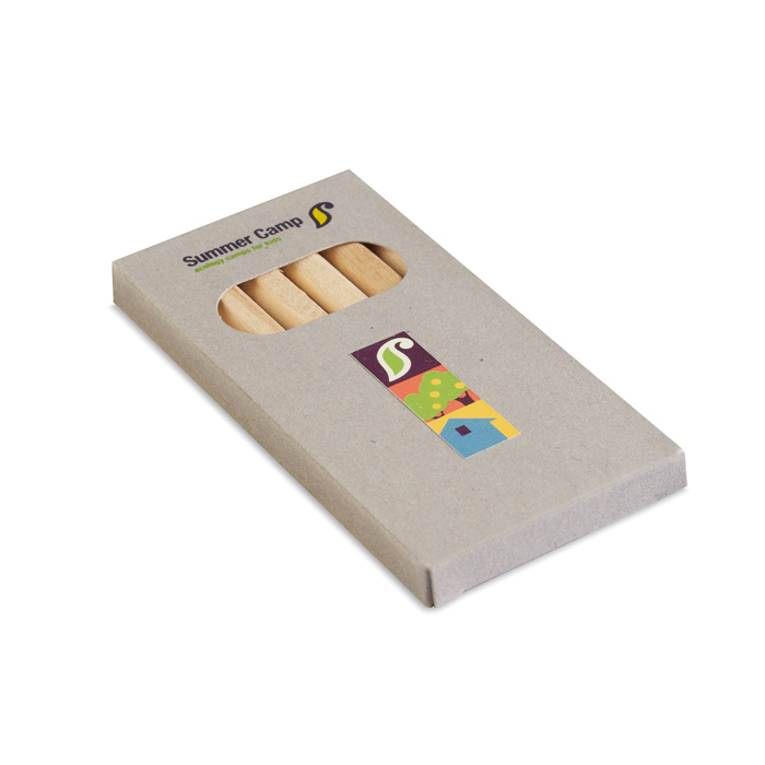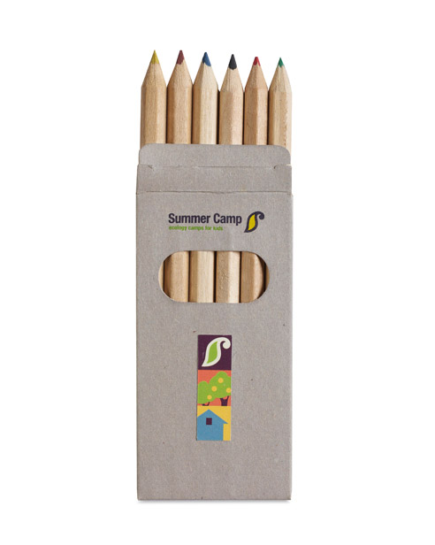 Bedruckbare Schachtel mit 6 Buntstiften als Werbeartikel für Kinder