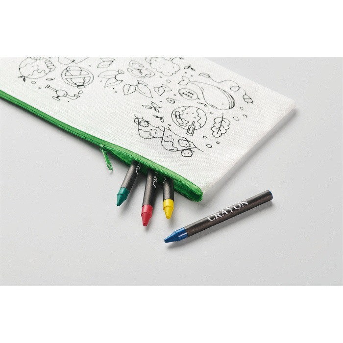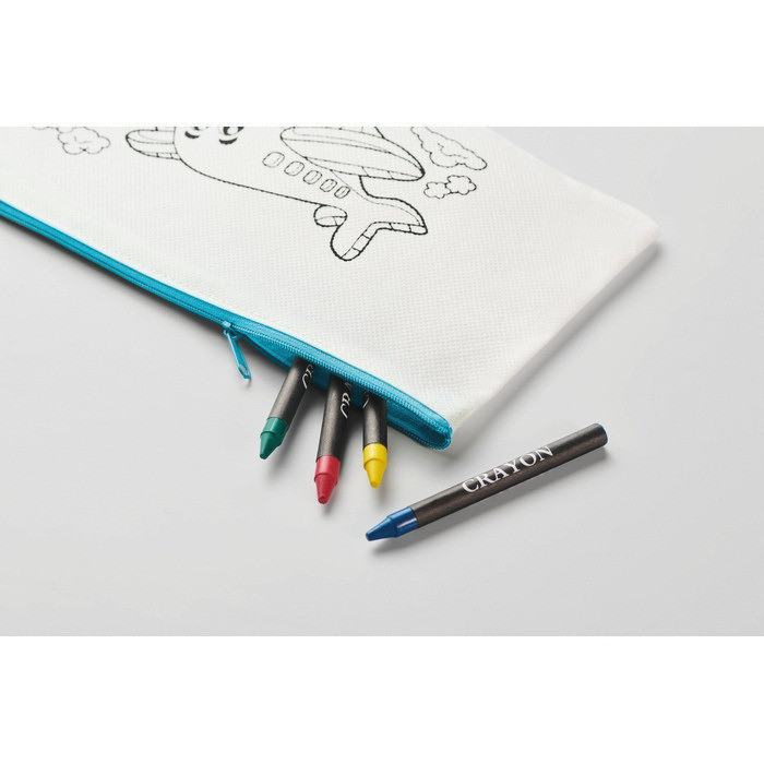 Kinder-Etui aus Non-Woven zum Ausmalen, gedacht für Aktivitäten bei Events und Kampagnen. Enthält 4 Buntstifte, damit der Nutzer das Design sofort individuell gestalten kann. Leichtes, handliches Format, einfach zu verteilen auf Messen, bei Aktionen am Point of Sale oder in Willkommenspaketen. Zum Ausmalen vorbereitete Oberfläche, geeignet für eine einfache Personalisierung und den sofortigen Einsatz. Praktische Option für Promotionen mit Fokus auf Familien, Schulen, Kindergärten oder Firmenaktivitäten mit Kinderpublikum.