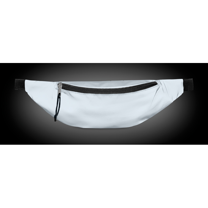 Reflektierende Tasche aus Polyester mit Reißverschluss. Inklusive verstellbarem Bund.