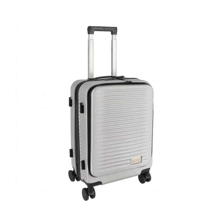 Kabinenkoffer mit robuster Konstruktion und Design für Geschäftsreisen. Ausgestattet mit vier drehbaren Rollen für einfaches Manövrieren und einem TSA-Schloss für zusätzliche Sicherheit bei Flugreisen. Der Griff verfügt über eine Smartphone-Halterung, damit Sie Tickets oder Informationen griffbereit haben. Auf der Rückseite befindet sich ein Becherhalter und an den Seiten zwei Haken zum Aufhängen von Taschen oder Nackenkissen. Das vordere Fach enthält eine gepolsterte Hülle für Laptops bis 15,6 Zoll. Geeignet für Teamreisen, Incentives oder Markenaktionen auf Messen.