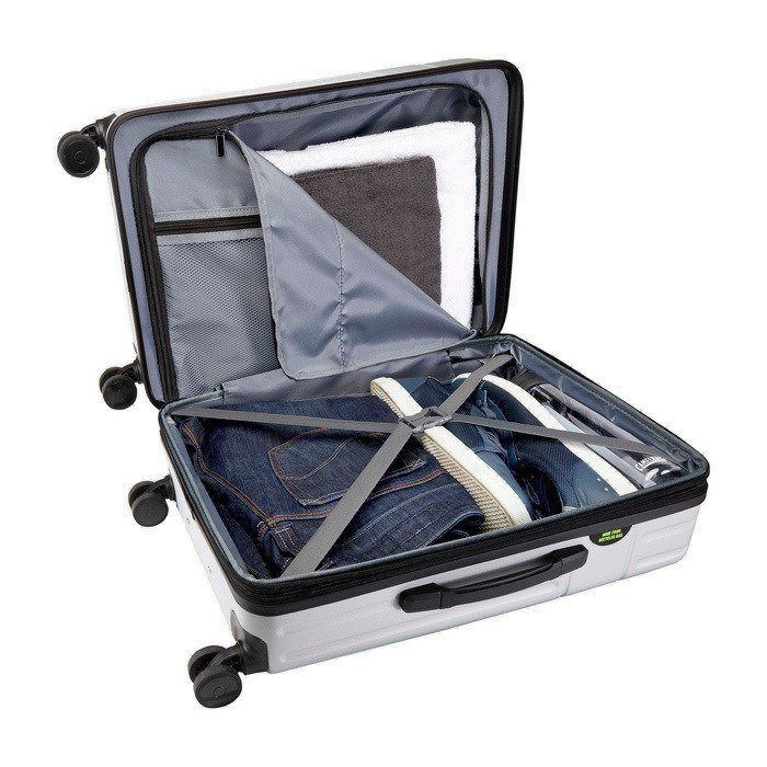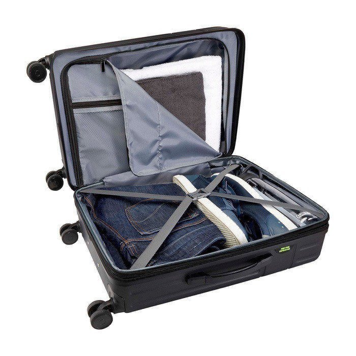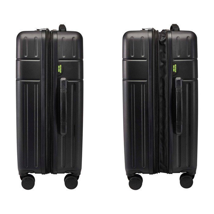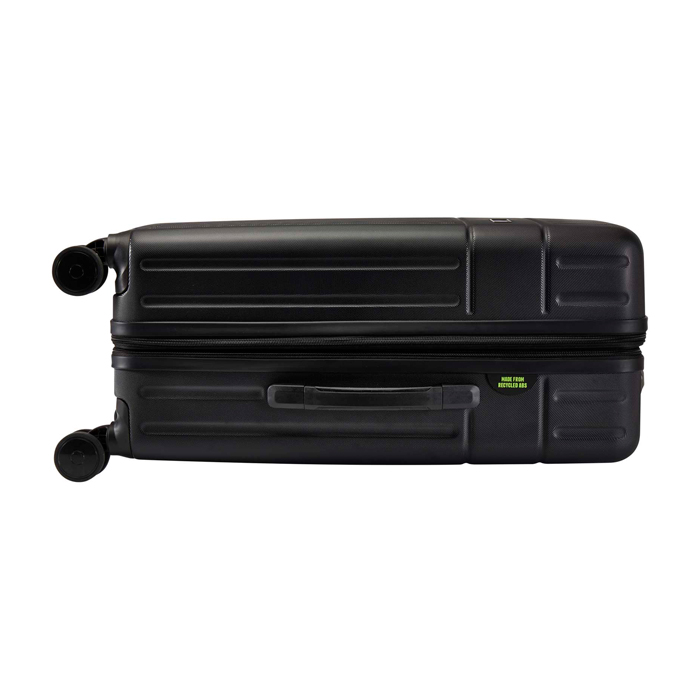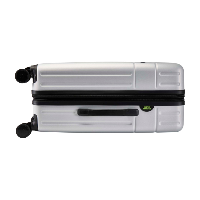 Erweiterbarer 24"-Koffer, hergestellt aus stoßfestem, recyceltem Kunststoff mit Innenfutter aus RPET. Mit einem Fassungsvermögen von 70 Litern plus zusätzlichem Erweiterungsvolumen ist er ideal für lange Reisen. Ausgestattet mit einem zweiteiligen Aluminium-Teleskopgestänge, vier 360°-Doppelrollen, einem TSA-Zahlenschloss und einem ergonomischen Griff für bequemes Handling. Im Inneren sorgen Kompressionsgurte und Reißverschlussfächer für optimale Organisation. GRS-zertifiziert, einschließlich der Druckelemente.