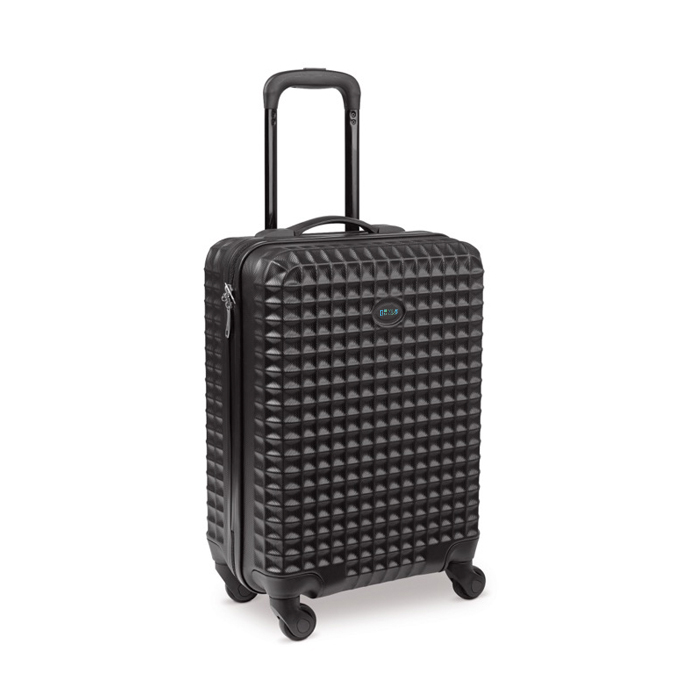 Trolley für das Handgepäck mit einem vollständig gefütterten Hauptfach und elastischen Riemen, die den Inhalt an Ort und Stelle halten. Der Koffer hat vier bewegliche Räder. Mit Platz für Doming. Einzeln verpackt in einer Box.