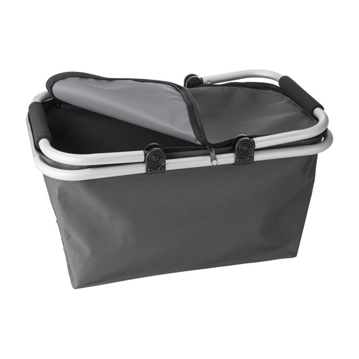 Vielseitig beim Picknick: Dieser faltbare Korb mit Aluminiumrahmen und weichem Griff sorgt für bequemen Transport von Einkäufen oder Zubehör.