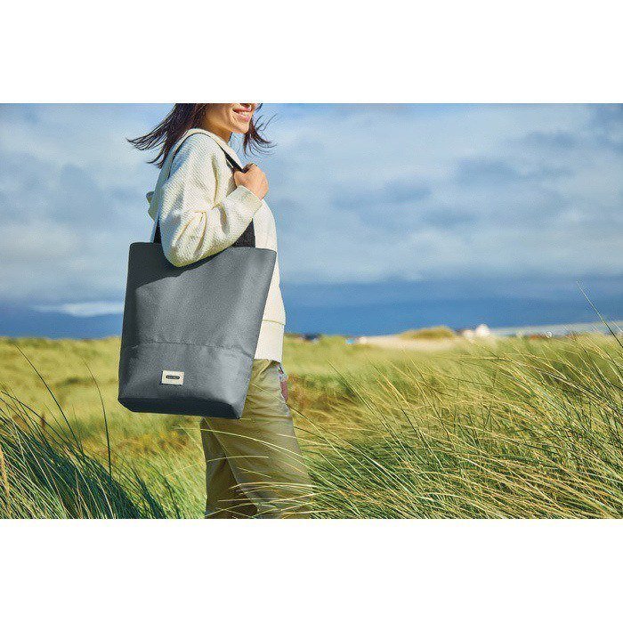 Geräumige 16-Liter-Tasche mit isoliertem Innenfach, das kalte oder feuchte Gegenstände getrennt hält. Sie besteht aus Stoff, der aus 13 recycelten Plastikflaschen hergestellt wurde, und verfügt über verstärkte Nähte und einen extra breiten, bequemen Schultergurt, wodurch sie robust genug ist, um schwere Einkäufe oder mehrere Weinflaschen zu transportieren. Dank ihrer verschweißten Nähte und des versiegelten Reißverschlusses ist sie 100 % dicht und garantiert so Widerstandsfähigkeit und Vielseitigkeit bei verschiedenen Verwendungszwecken. Der Innenraum verfügt über ein geteiltes Fach zur Trennung von kalten oder feuchten Inhalten sowie eine Innentasche für den einfachen Zugriff auf kleine Gegenstände. Der verstärkte, wasserfeste Boden sorgt für zusätzliche Haltbarkeit auf jedem Untergrund, während das wasserabweisende Isolierfutter die Reinigung erleichtert. Auch für Laptops bis zu 40 cm geeignet. In vier Farben erhältlich.