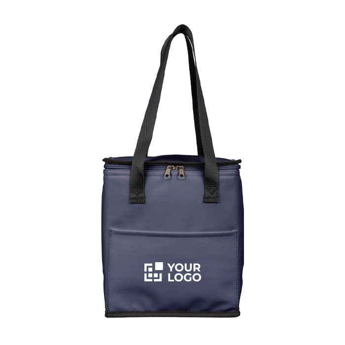 Kühltasche aus recyceltem Kunstleder mit Futter aus recyceltem Polyester 210D. Sie bietet ein Fassungsvermögen von 9 Litern, um im Büroalltag oder unterwegs Speisen und Getränke zu transportieren. Sie verfügt über lange Tragegriffe (66 cm) für ein bequemes Tragen über der Schulter. Eine Fronttasche dient zum Verstauen von Servietten, Besteck oder kleinen Unterlagen. Sie wird einzeln verpackt geliefert und ist bereit zur Personalisierung für Unternehmensaktionen und Veranstaltungen.