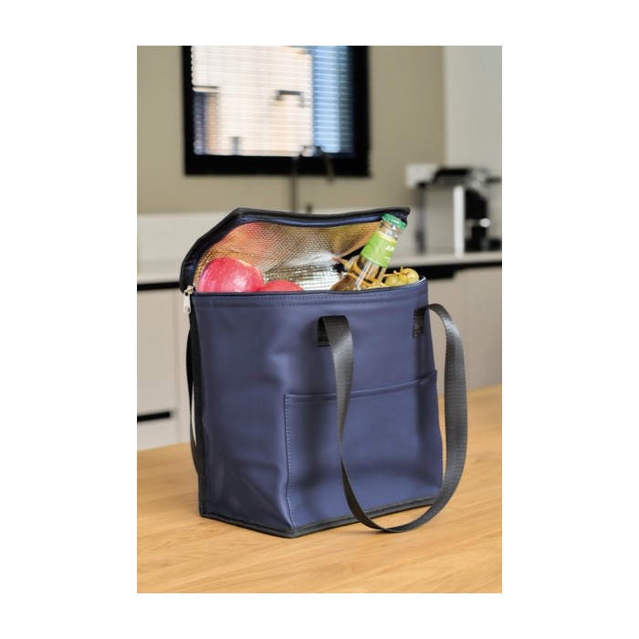 Kühltasche aus Kunstleder mit langen Tragegriffen und Fronttasche 9 l