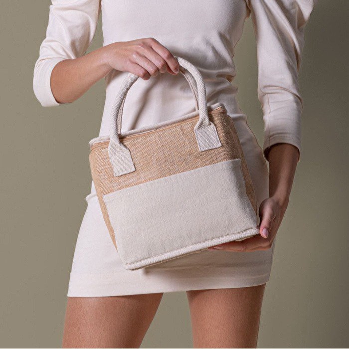 Kühltasche aus Jute mit verstärkten Baumwollhenkeln