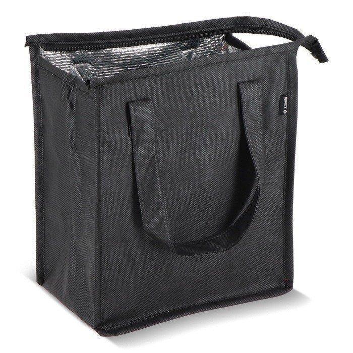 Kühltragetasche für das Mittagessen aus recyceltem PET-Vliesmaterial (75 g/m²) mit Aluminiumfolien-Innenfutter. Kompakt und praktisch.