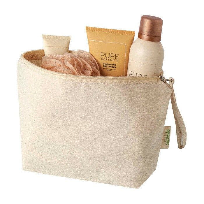 Kosmetiktasche aus 50% recycelter Baumwolle, 250 gr/m2