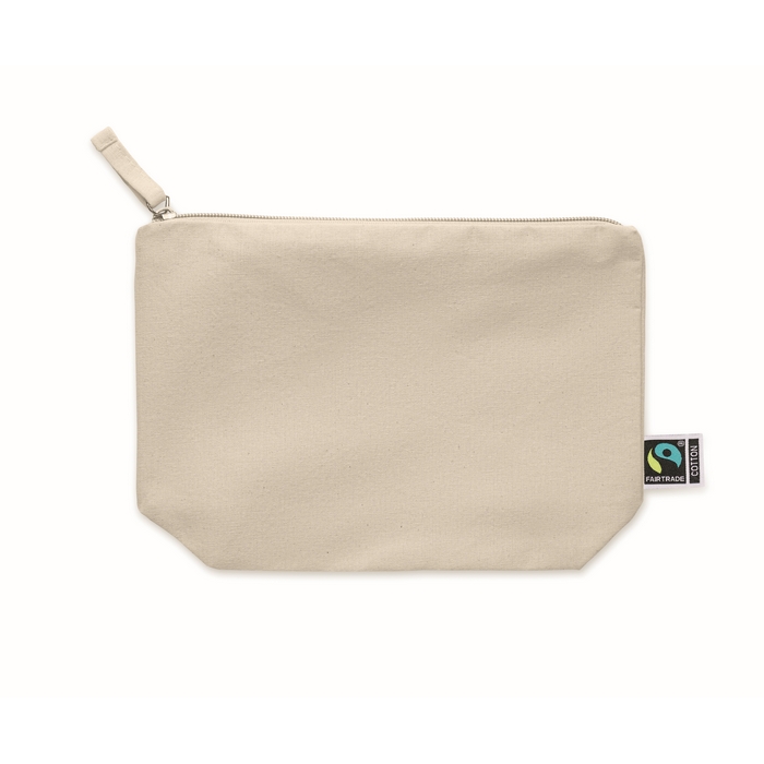 Linie ”Natur” Kosmetiktasche hergestellt aus 100% Baumwolle 180g/m2 in einem natürlichen Farbton. Mit Fairtrade-Zertifizierung, einer Alternative zum konventionellen Handelssystem, die die Entwicklung der Völker und den Kampf gegen die Armut verfolgt. Hauptfach mit Reißverschluss und passendem Abzieher, inklusive Fairtrade-Label und Anhänger aus recyceltem Karton.