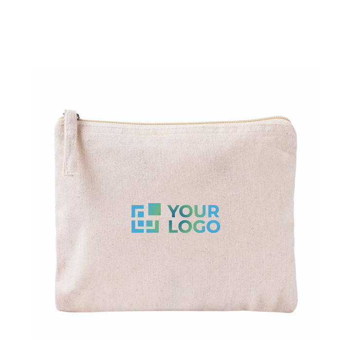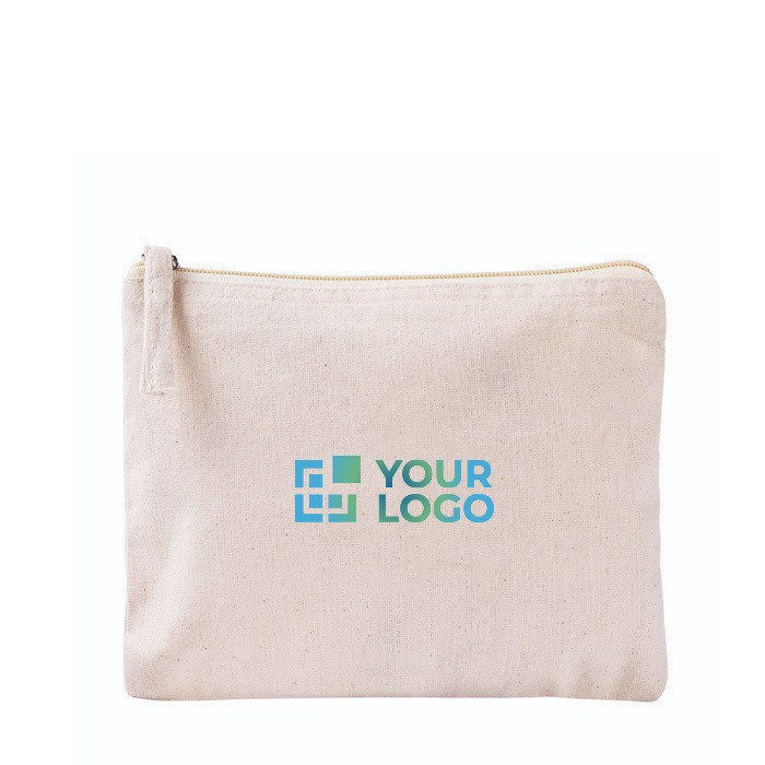 Flache Kulturtasche aus Bio-Baumwolle, 180 g/m², mit minimalistischem Design als größtem Vorteil. Zudem vermitteln Sie damit ein natürlicheres Image.