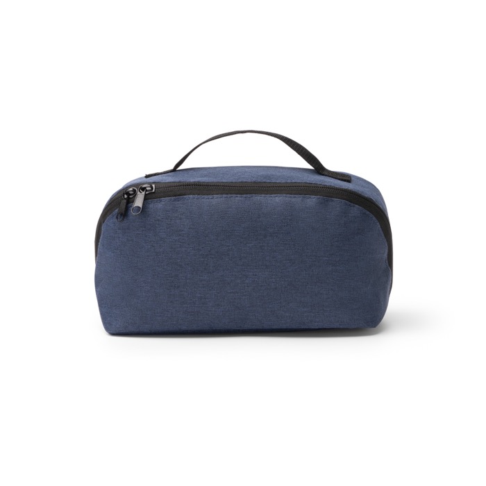Kulturbeutel aus recyceltem Kunststoff mit 600D-Gewebe und diagonalem Reißverschluss, entwickelt zum Organisieren von Zubehör und Produkten für Reisen oder den Arbeitsalltag. Das Hauptfach öffnet sich um 180°, sodass Sie den Inhalt leicht sehen und erreichen, ohne suchen zu müssen. Enthält eine unabhängige Innentasche mit Reißverschluss als Trennfach sowie eine zusätzliche Netztasche mit elastischer Fixierung für kleine Teile. Der Tragegriff erleichtert den Transport zwischen Büro, Veranstaltungen oder Teamreisen.