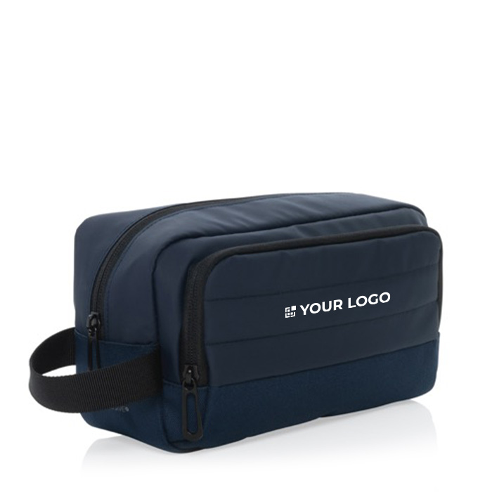 Länglicher Kulturbeutel aus RPET mit zwei Taschen und Tragegriff