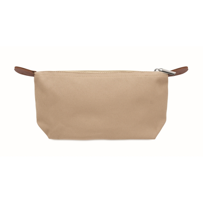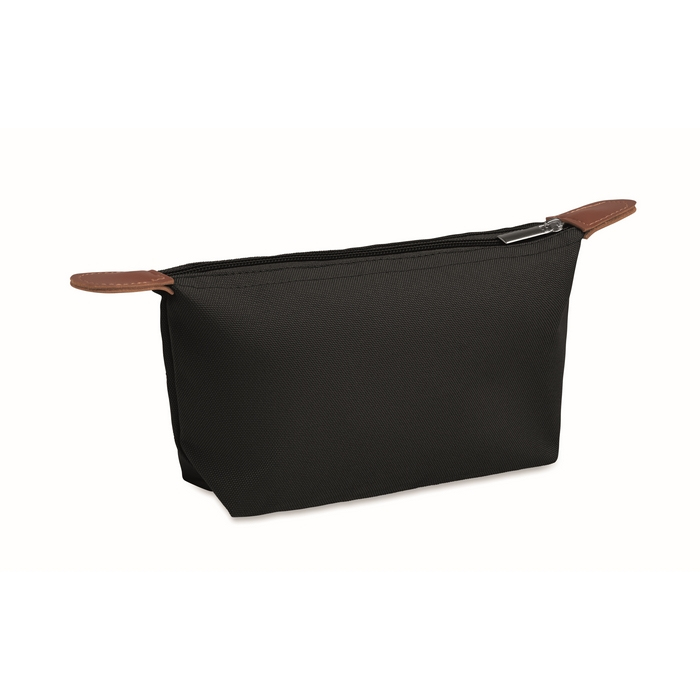 - Kulturbeutel aus RPET-Polyester 600D mit braunem PU-Detail