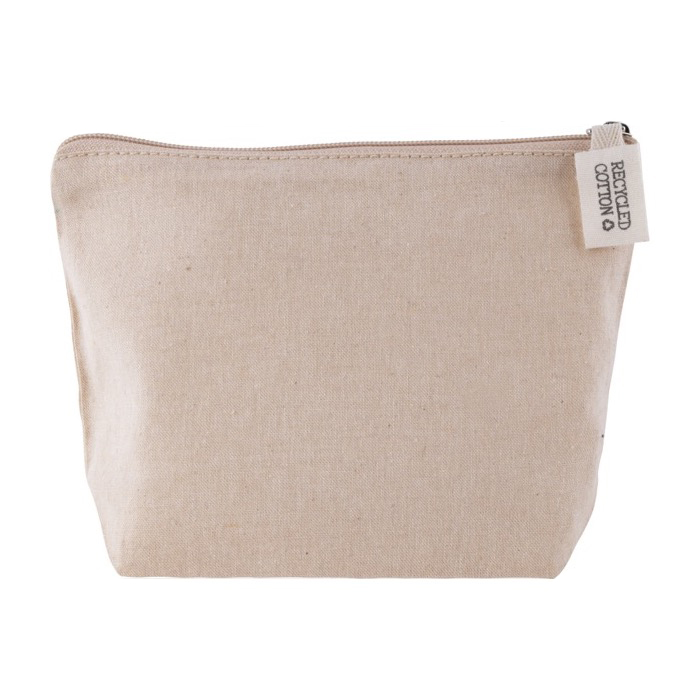Kulturbeutel aus 100 % recycelter Baumwolle, 140 gr/m2.